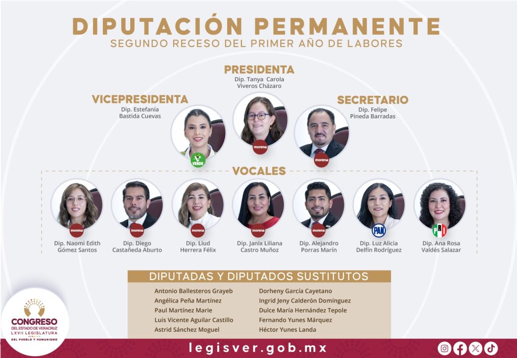 De esta manera, este órgano legislativo quedó integrado en su presidencia con la diputada Tanya Carola Viveros Cházaro; en la vicepresidencia, con la legisladora Estefanía Bastida Cuevas, y en la secretaría con el diputado Felipe Pineda Barradas.