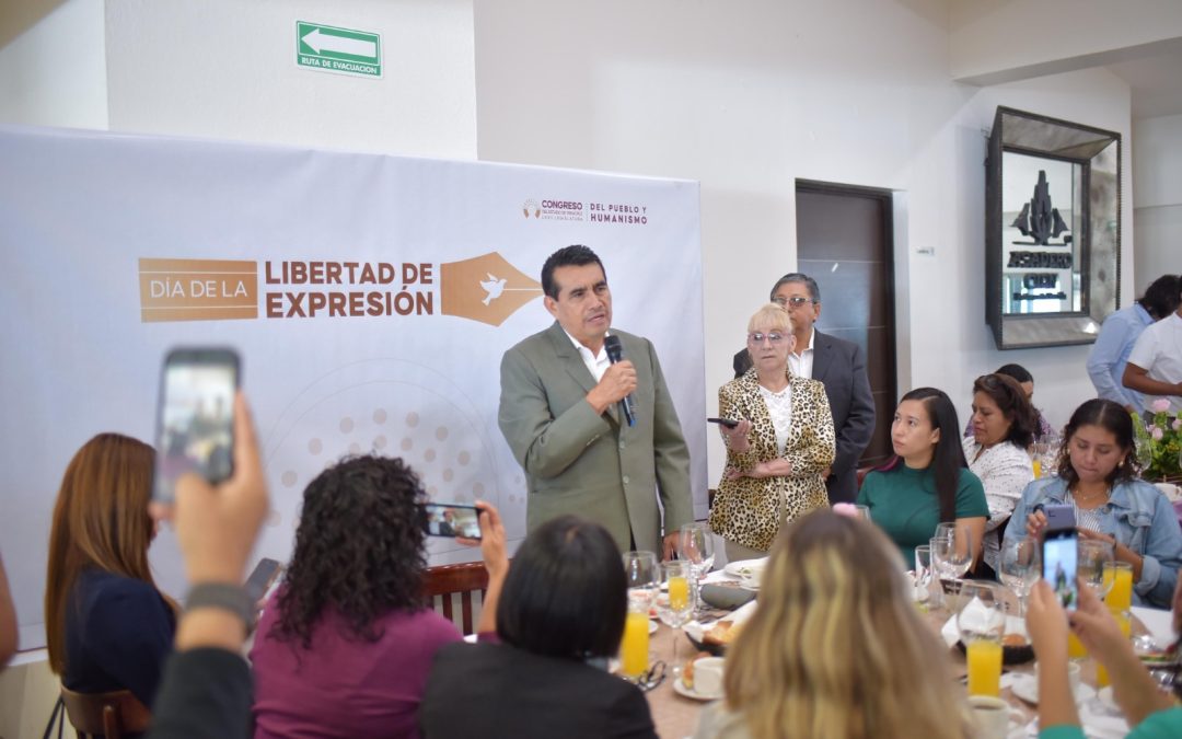 En este encuentro, organizado por la Coordinación de Comunicación Social, a cargo del periodista Esaú Valencia Heredia, el legislador subrayó que la libertad de expresión es una parte fundamental de la vida pública del país y del estado, toda vez que no puede seguirse o guiarse en un solo sentido, “se requiere la voz crítica que nos dé su punto de vista”.